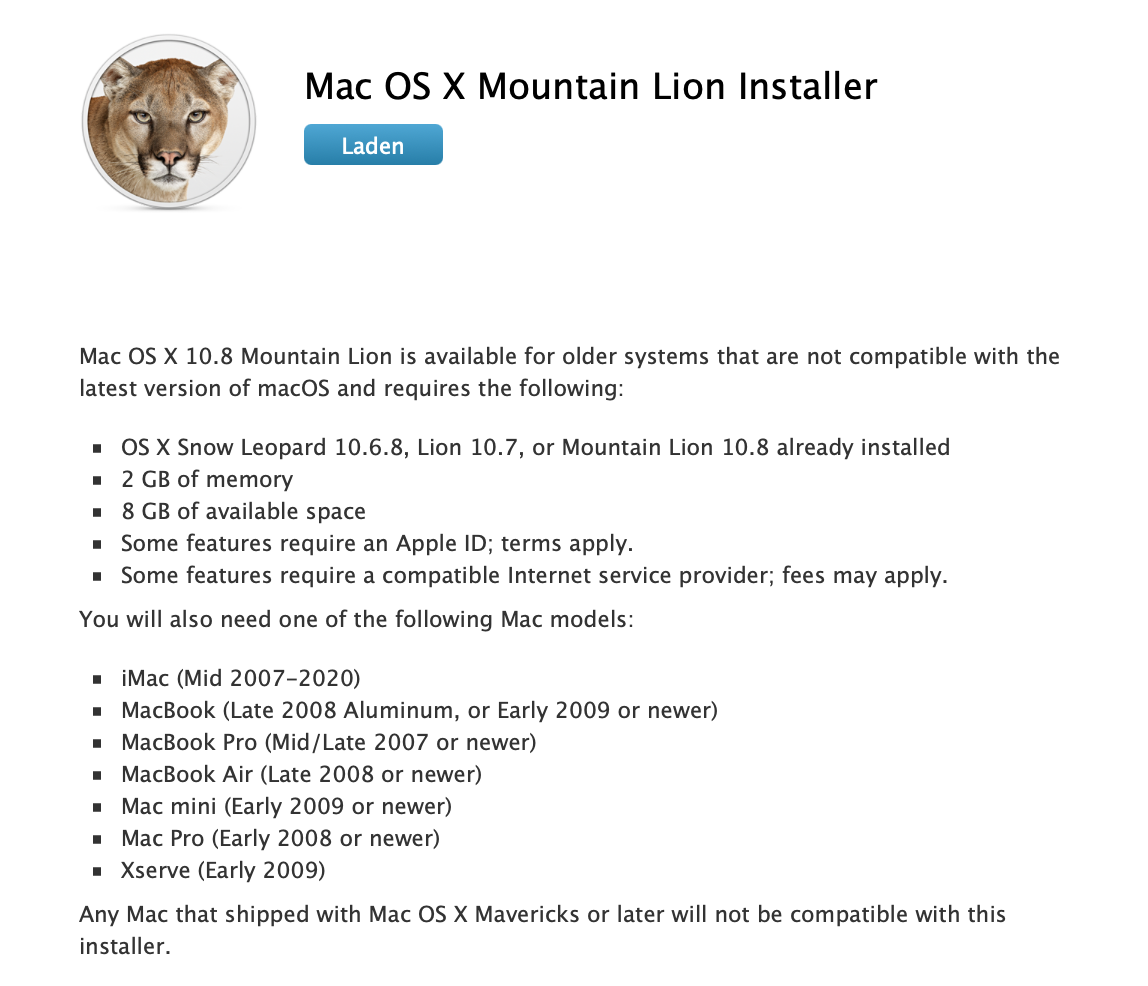 Mountain Lion https://support.apple.com/kb/DL2076?locale=de_DE