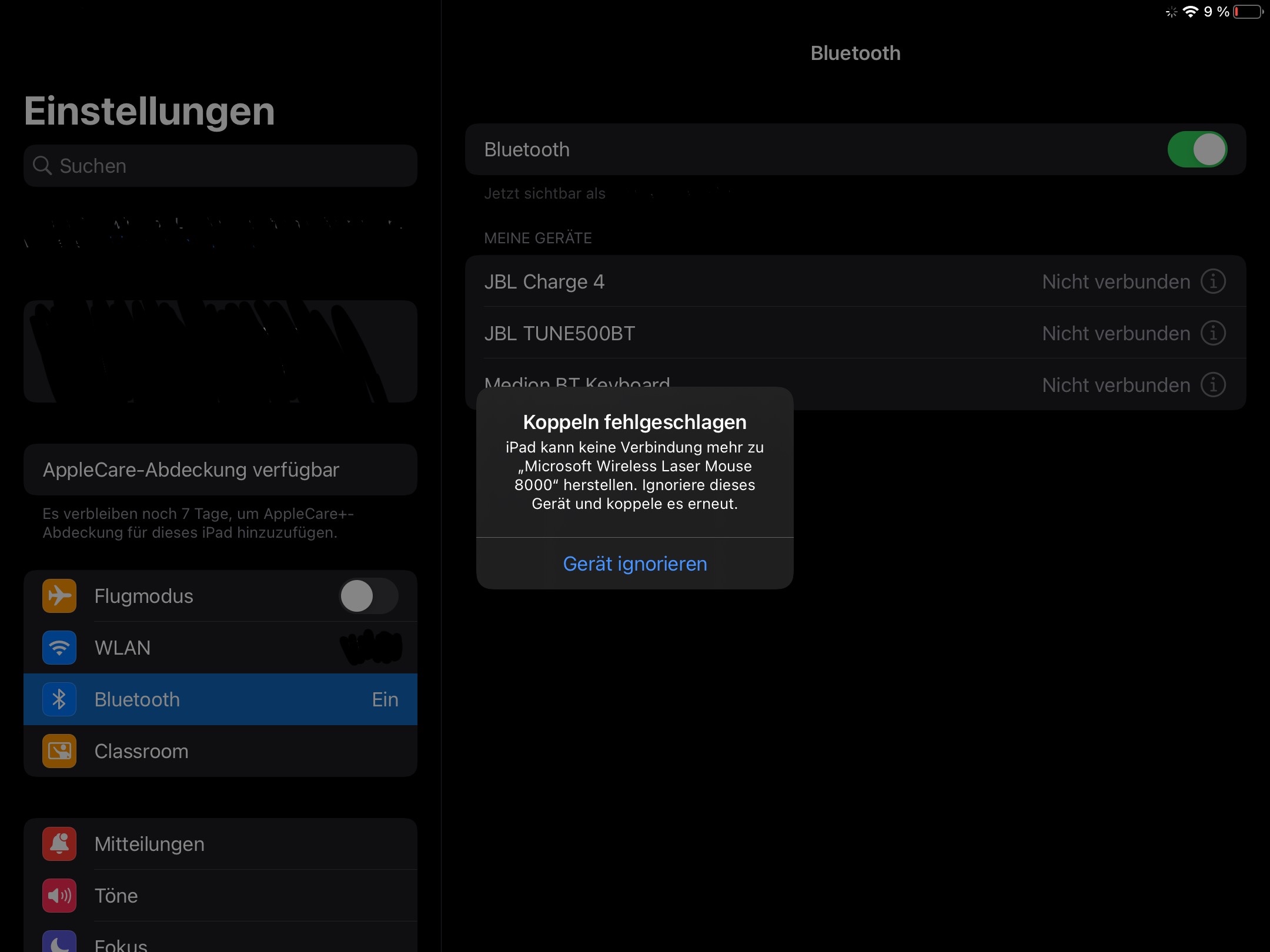 I recently got my iPad (8th generation, 2021) for school. Now that I got a Bluetooth mouse and Bluetooth mouse already at home, I didn’t bought any additional Apple products. My keyboard paired successfully, but my mouse (Microsoft “Wireless laser mouse 8000) only connects in the Bluetooth settings, but won’t pair.