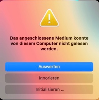 Es kommt die Fehlermeldung „Das angeschlossene Medium ..." s. Foto