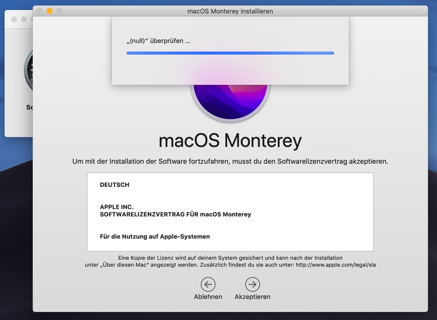 Update auf macOS Monterey bleibt bei "(null) überprüfen..." stehen