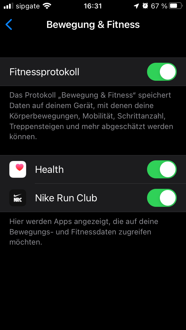 Stelle bitte einmal sicher, dass in den Einstellungen > Datenschutz > Bewegung & Fitness > Fitnessprotokoll und Health auch aktiviert sind.