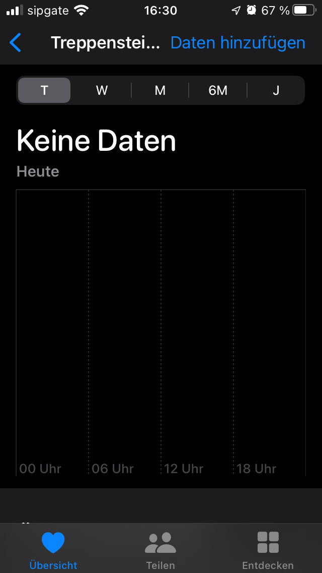 Ich habe das gleiche Problem. In der Übersicht unter Favoriten wird mir der Punkt "Treppensteigen" angezeigt, aber er ist ohne Inhalt. Wo würden die Daten herkommen? Muss/kann ich eine weitere App mit Health verknüpfen, die dann die Daten liefert? Welche käme dazu in Frage?