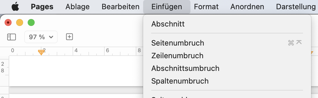 Ich würde gerne den Kurzbefehl für einen Seitenumbruch nutzen: