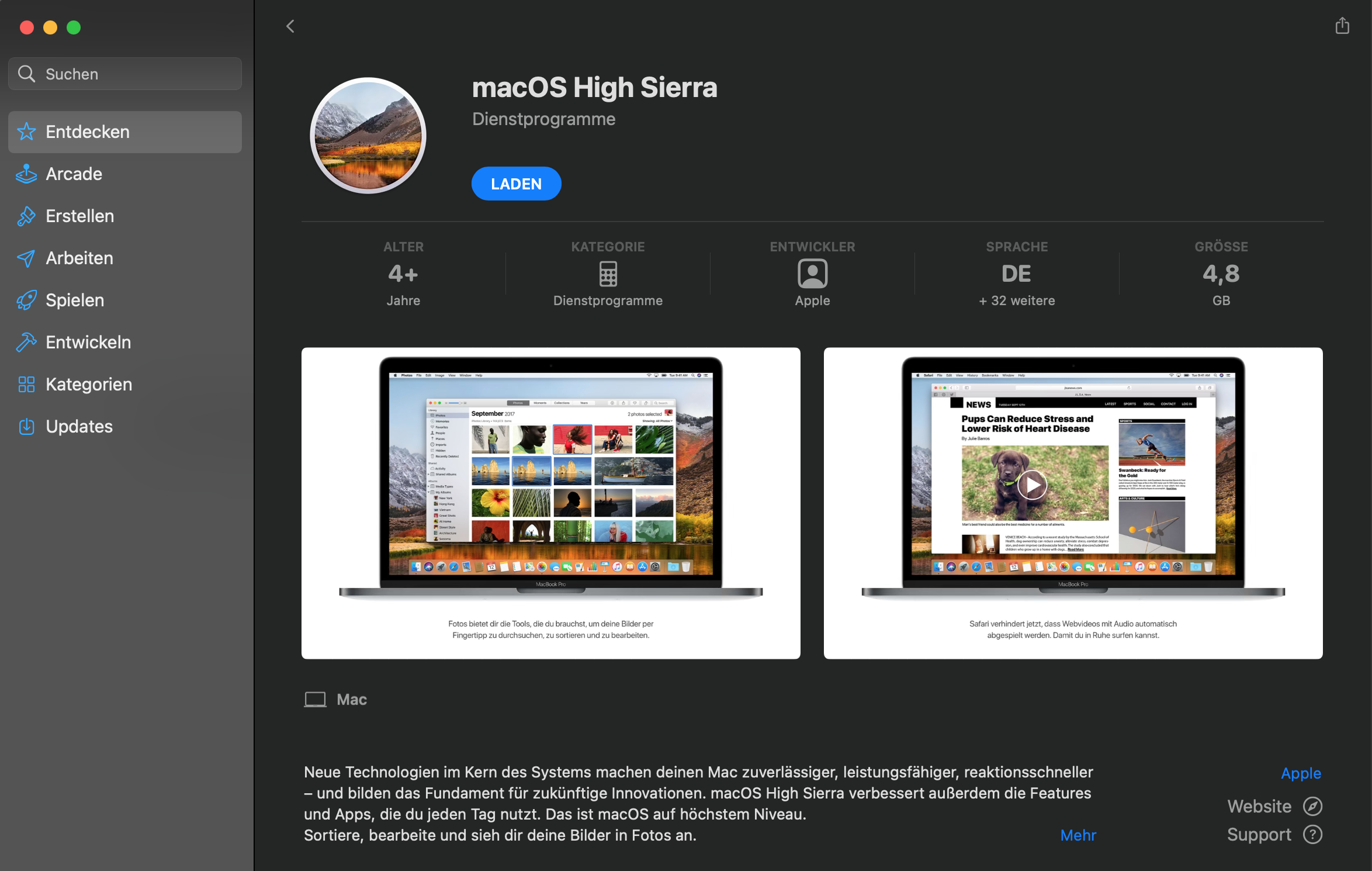 Auf welche Version kann ich von High Sierra auf meinem Mac Book Anfang 2014 mit Intel 1,7 Prozessor upgraden?