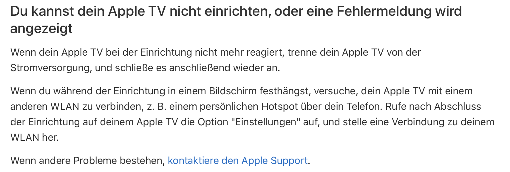 Apple TV AirPlay - „Aktivierung fehlgeschlagen“
