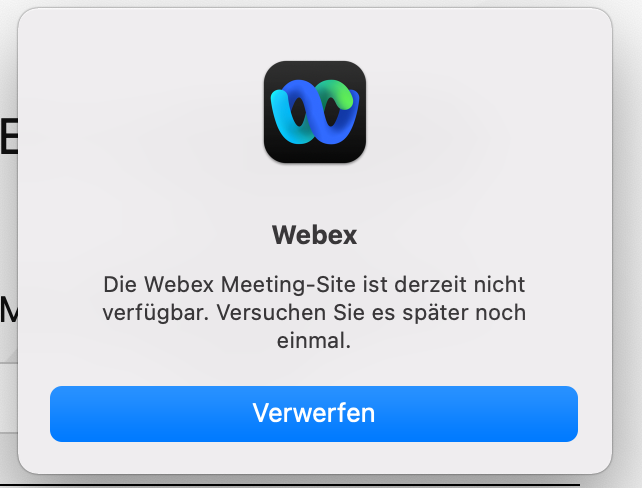 Webex geht bei meinem M1 MacBook Air nicht. Wenn ich einem Meeting als Gast beitreten möchte kommt nur die Meldung. Siehe Bild. Im Chrome funktioniert es. Eine Idee, was da los ist?