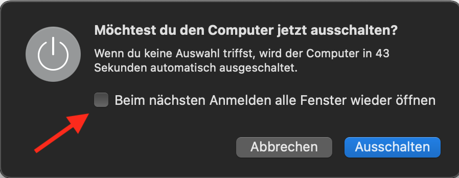 • Beende alle Programme, bevor du dem Mac neu startest.