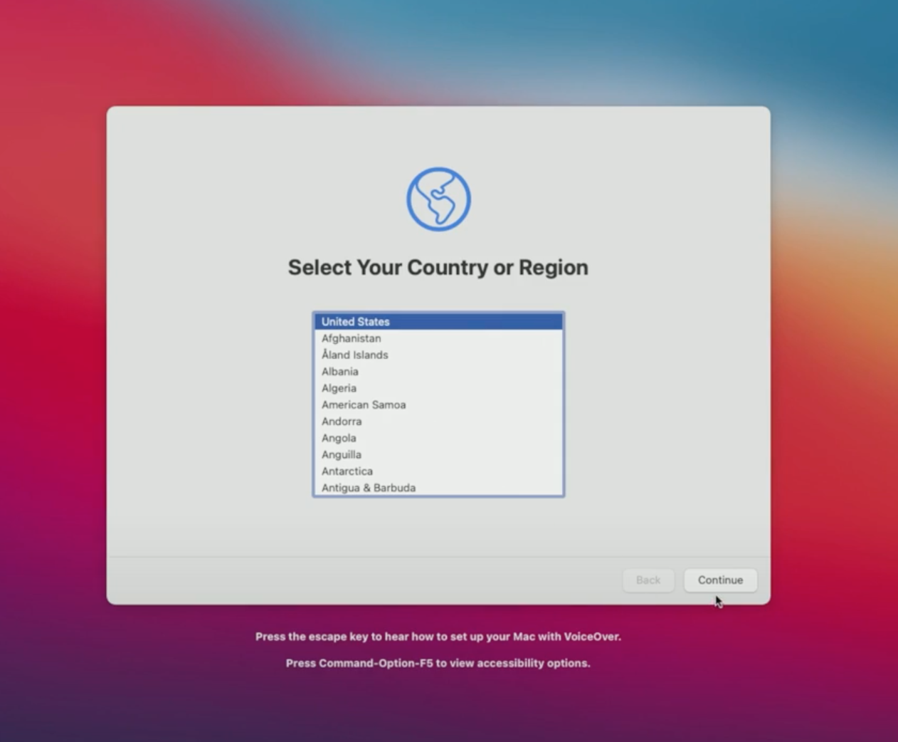 Nach knapp 30 Minuten erscheint dann dieser Bildschirm (bei Catalina sieht er etwas wenige bunt aus)