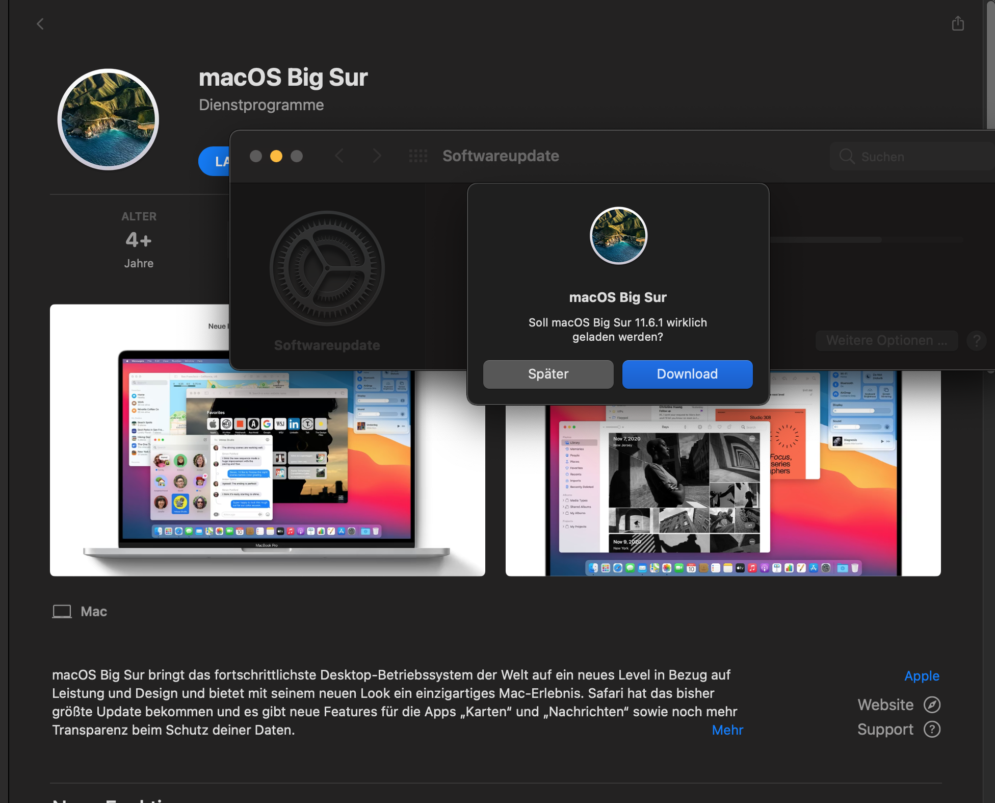 Alos ich komme in den AppStore auf die Seite wo BigSur gezeigt wird.