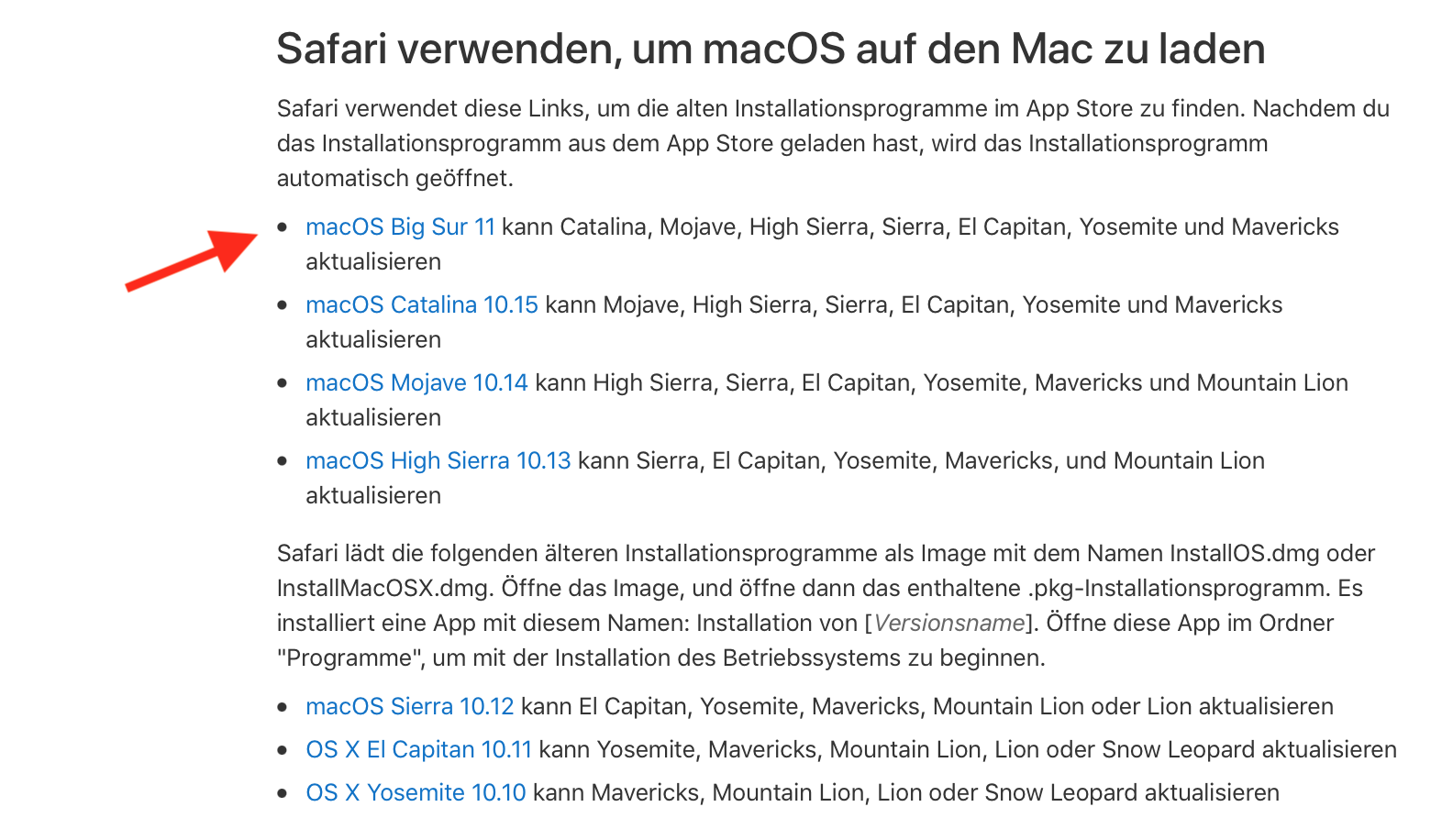 starte Safari, dann kannst du auf dieser Seite des Apple Support Big Sur anklicken (rot markiert)
