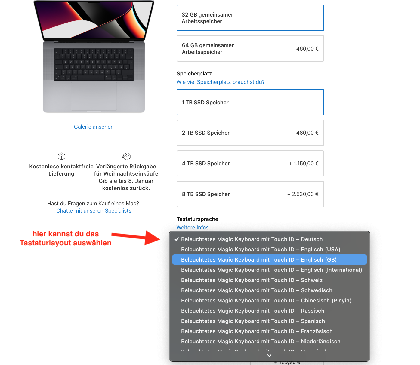 Wie kann ich ein MacBook Pro mit englischer Tastatur kaufen ?