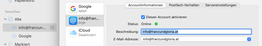 In erster Zeile habe ich immer die verschiedenen implementierten Accounts gesehen - Eingang für alle und darunter wählbar für gmail/gmx etc