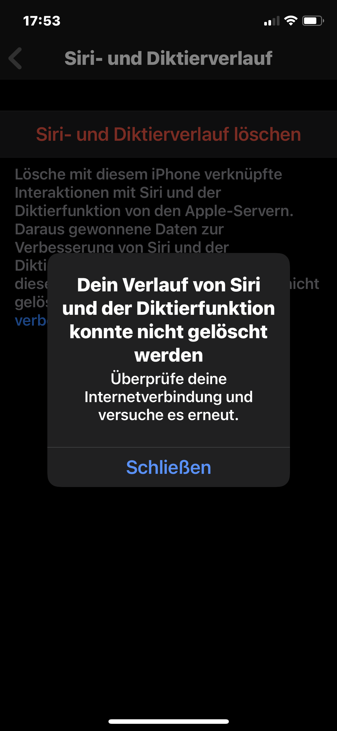 Siri sagt nur noch ein Fehler ist aufgetreten