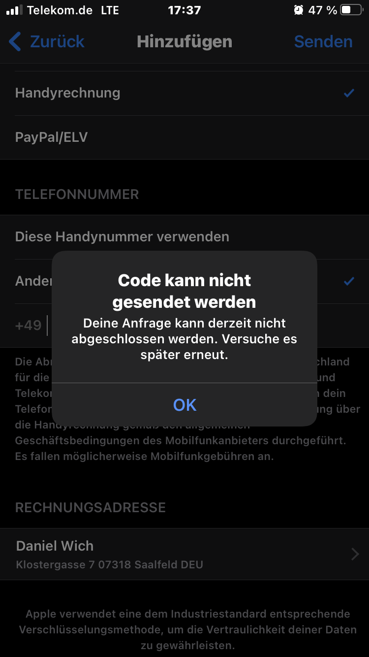 Bezahlmethode hinzufügen über Mobilfunk