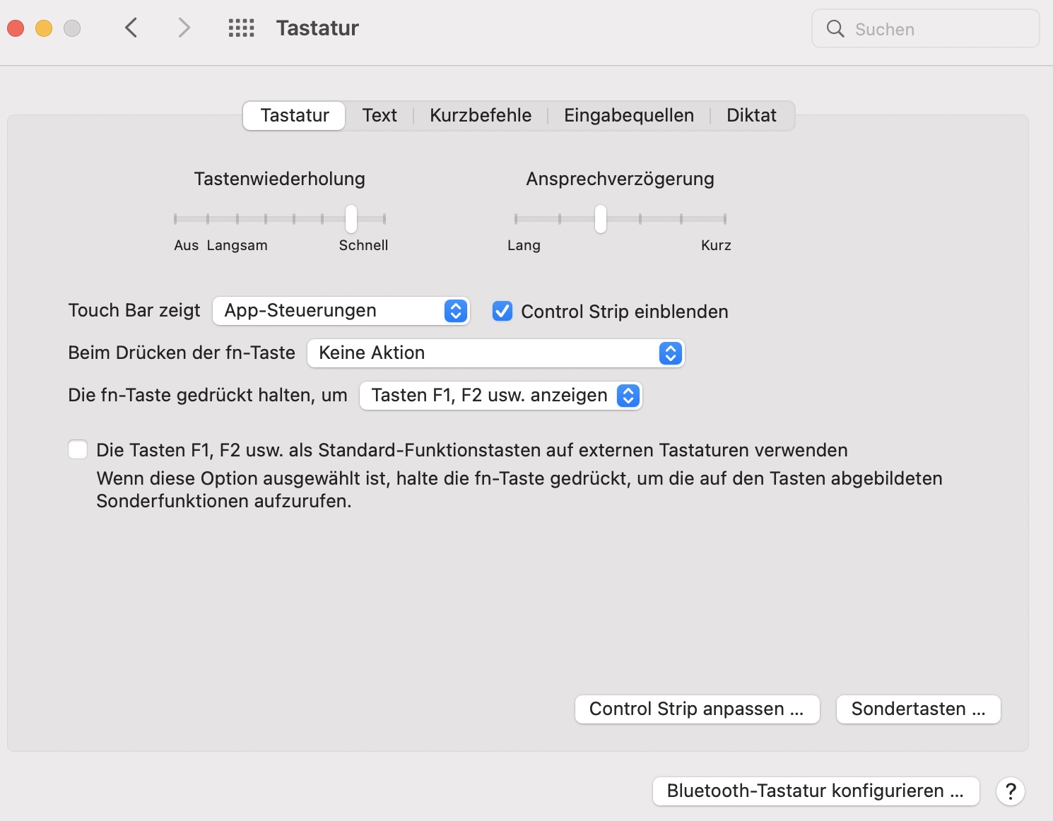 Jedoch gibt es diese Einstellungen bei meinem Mac einfach nicht. Ich habe einen Screenshot meiner Einstellungen hier angehängt. Da wo die Einstellungsoptionen seien sollten sind sie nicht. Vielleicht wisst ihr ja weiter. :) Ich habe ein 2018 MacBook Pro mit Touch Bar....