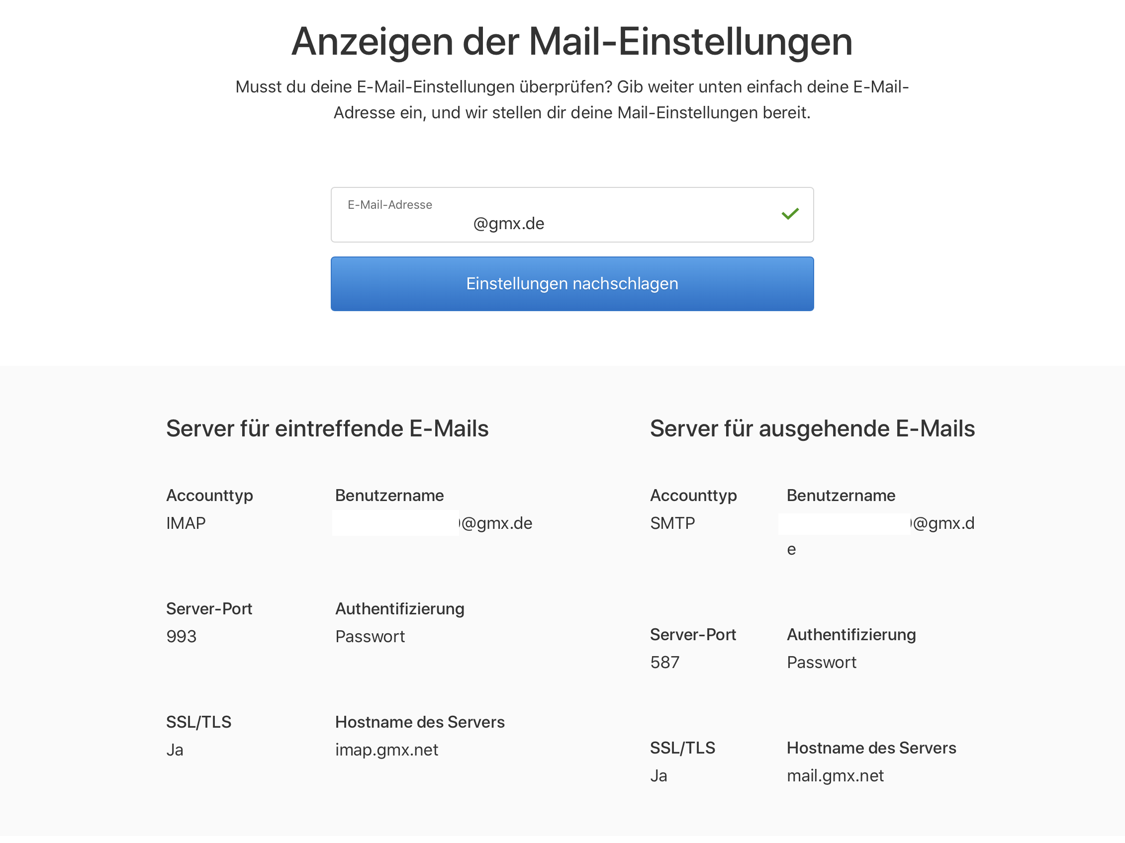 Wurden dir die korrekten Account Informationen zu dem GMX Account auf der Apple Seite zur Mail Hilfe angezeigt oder gab es dort kein Ergebnis? Ich habe ebenfalls einen GMX Account in Verwendung und mir wurde auf der Seite folgendes zu meinem GMX Account angezeigt: