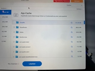 Ich habe 500GB Speicher. Das Problem ist bei mir nur die iCloud. Dort habe ich 2TB Speicherplatz und warum auch immer es eine Cloud ist, will mein Mac alle Dateien runterladen. Geht nur schlecht wenn 1,1TB auf der Cloud sind und nur 500 GB verfügbar sind. Den Cache löschen von der iCloud bringt nur ein paar Stunden etwas, danach ist der Ordner wieder da und es hat wieder runtergeladen.