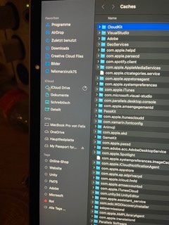 Nach wenigen Stunden kam die Meldung, dass der Systemspeicher voll sei. Wie der Screenshot oben waren bei mir um die 900GB Systemdaten gefunden wurden. Nach langer Recherche und habe ich herausgefunden, wo sich die verschiedenen Cache-Ordner befinden. Der Cache-Ordner, der das System vollgemacht hat, war unter "Finder->Gehe zu(im Menü)->(Option-Taste gedrückt) Library->Cache" zu finden. Nach dem Löschen des Orders waren wieder nur 15GB Systemdaten vorhanden. Nach einem Neustart und der normalen Nutzung war am nächsten Tag das gleiche Problem wieder da. Selbst ein neu Installieren des Systems konnte den Fehler nicht dauerhaft beseitigen.