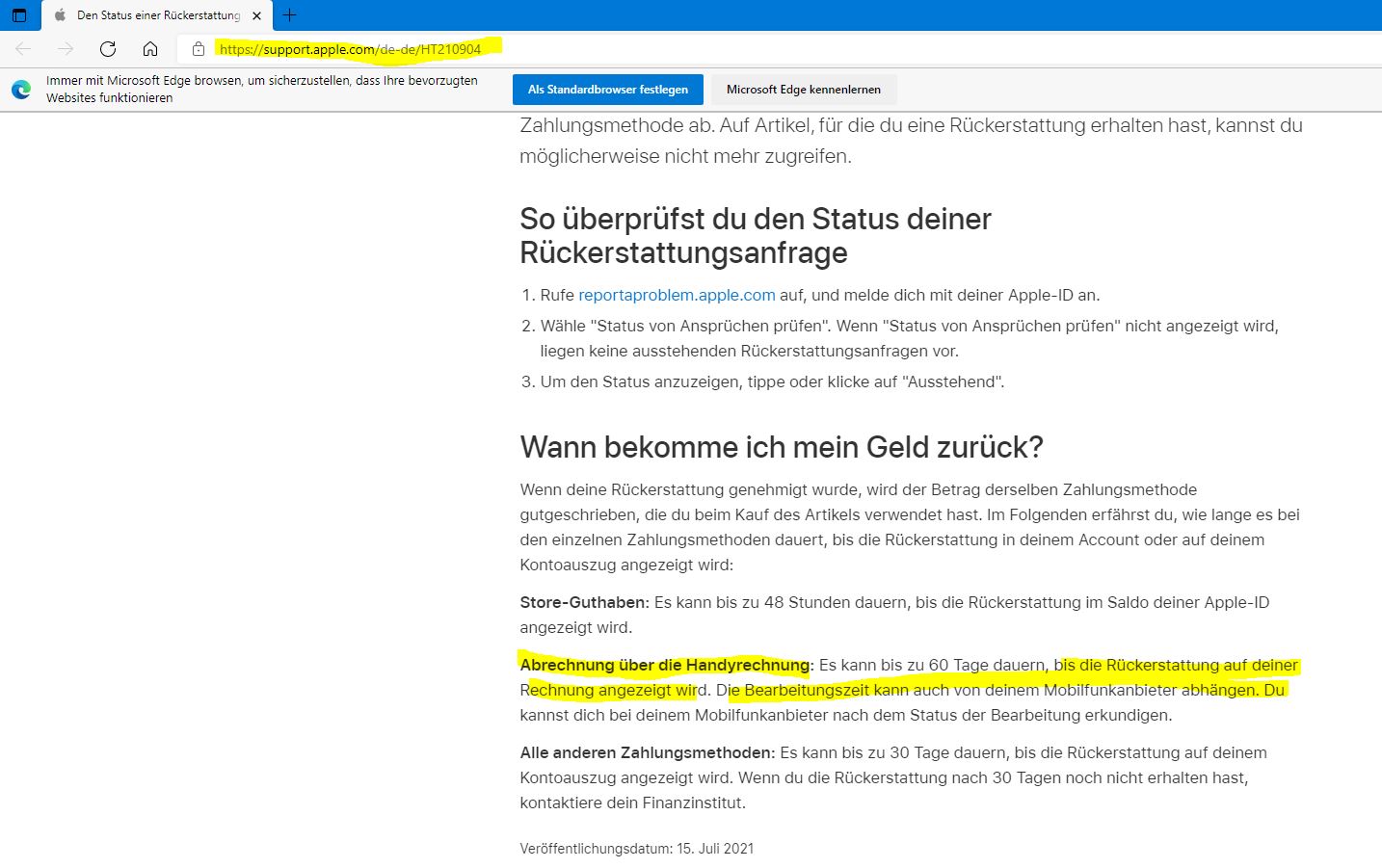 Mittlerweile wurde ein Teil des Kaufes von Apple zurückerstattet, allerdings wurde der Erstattungsbetrag komplett als iTunes-Guthaben hinterlegt. Wird dieser Erstattungsbetrag noch auf meine Handyrechnung gutgeschrieben? Oder kann ich mein iTunes-Guthaben selber auf meine Handyrechnung (Bankkonto) überweisen?