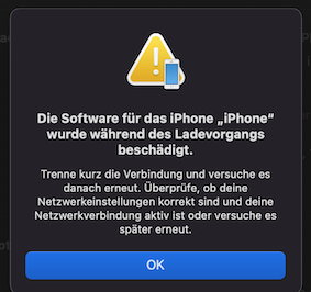 Die Aktualisierung wurde wohl nun durchgeführt. iTunes stürzt nun nicht mehr ab, aber die ursprünglichen Probleme bestehen weiter. Also Wiederherstellung und damit Löschen aller Daten.