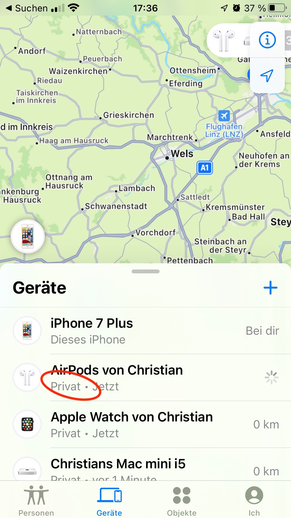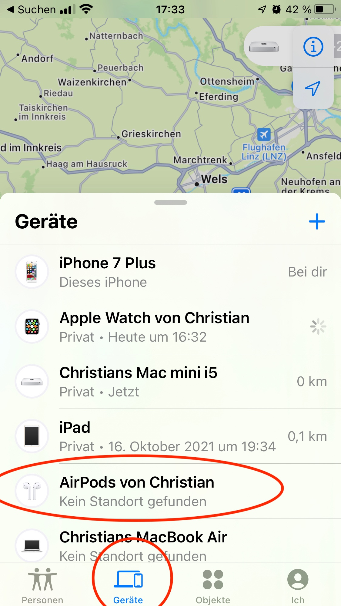 Wie kann ich die AirPods in der App "Wo ist?" Finden?