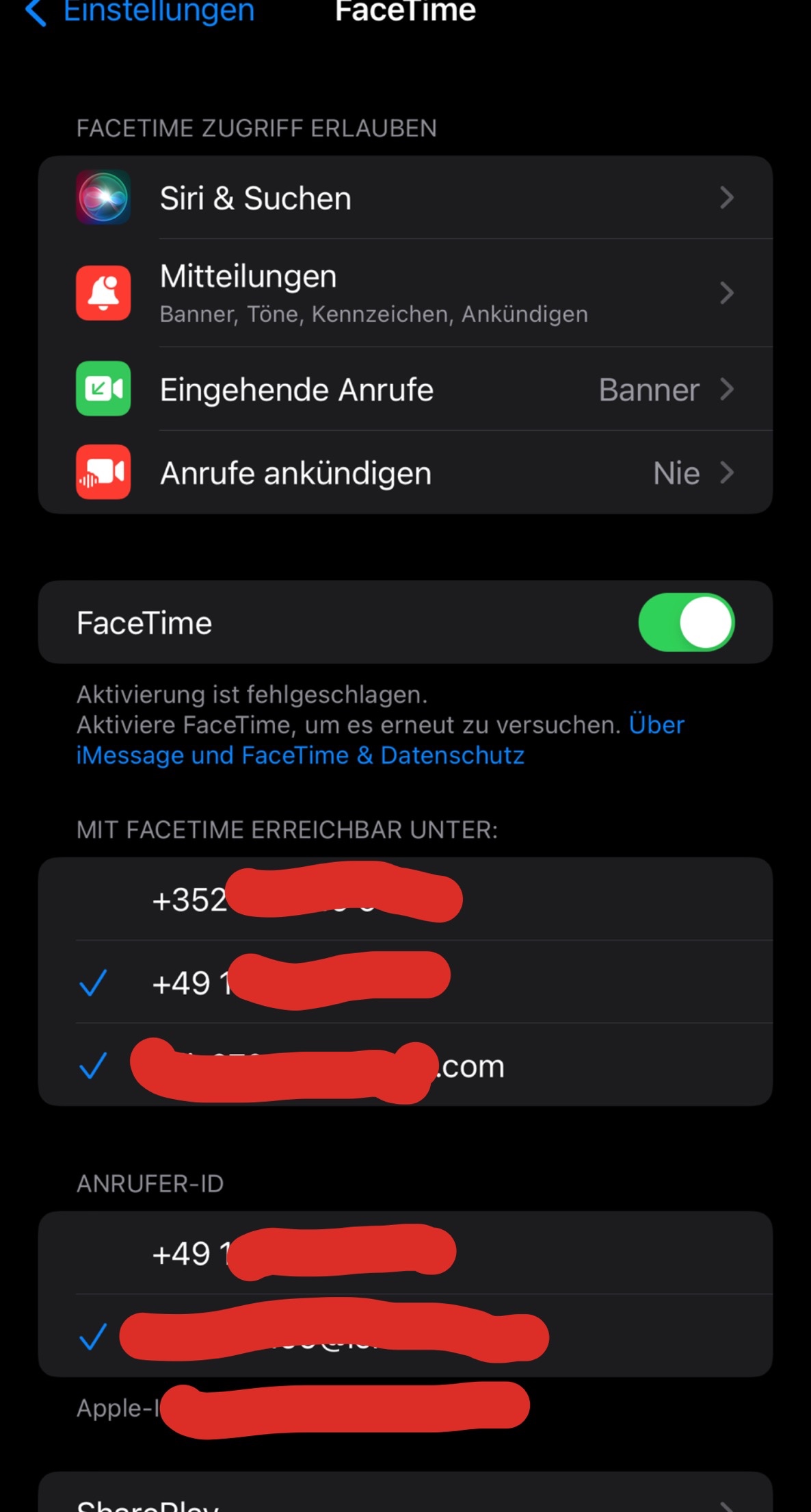 Facetime Aktivierung fehlgeschlagen