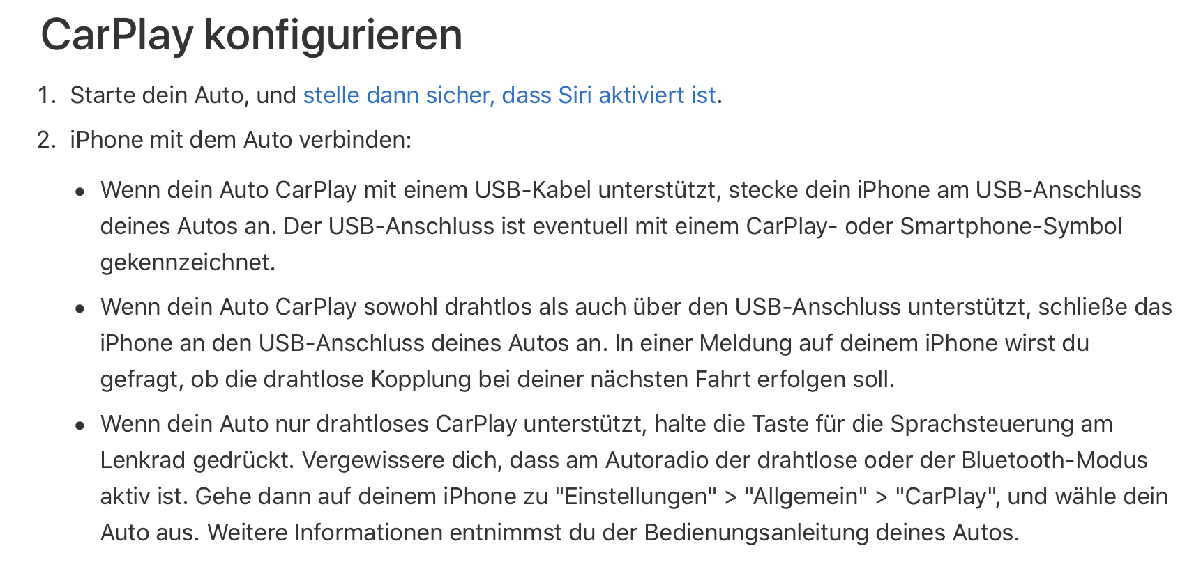 Apple CarPlay nach ignorieren wieder hinzufügen?