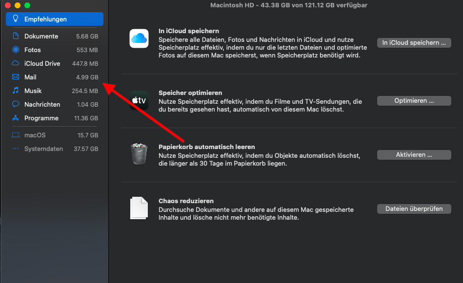 Mail benötigt über 5 Giga Speicher