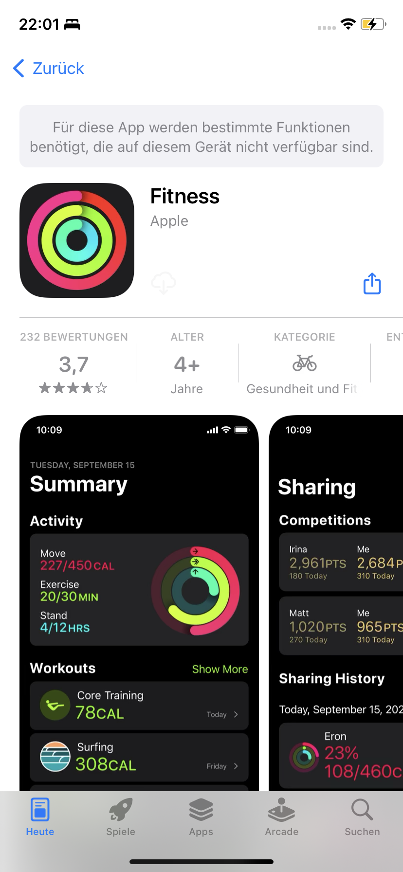 Auf meinem iPhone kann ich Apple Fitness nicht laden, obwohl das so weit ich mich Informiert habe funktionieren: