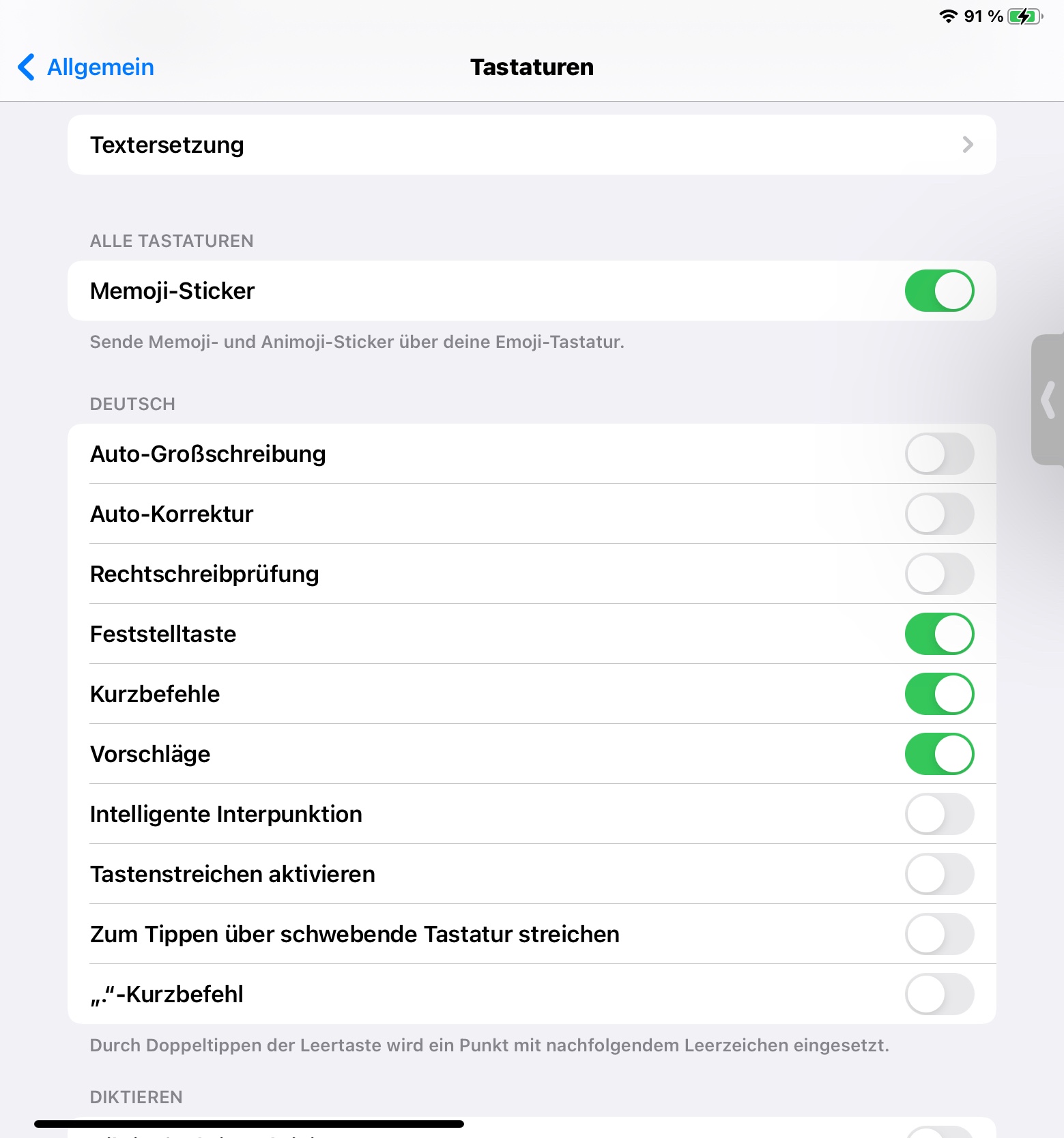 Automatische Großschreibung durch Tastenstreichen deaktivieren
