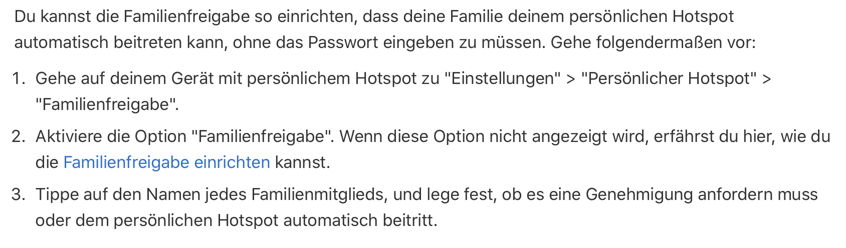 Problem: Apple vergibt jedesmal eine neue MAC-Adresse (vermutlich aus Privacy-Gründen). Das kann es aber nicht sein - dadurch muss ich jedesmal (bei jeder neuen Fahrt) den IPhone-Hotspot mit meinem Fahrzeug-Navi neu koppeln (also mit dem IPhone WLAN-Hotspot verbinden), das dauert (WLAN-Code im Navi eingeben, etc.)