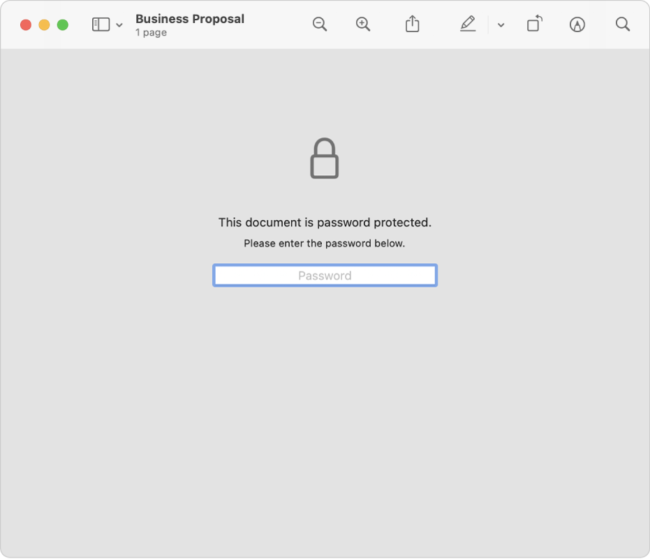 Du kannst eine PDF-Datei mit einem Passwort versehen, das jeder zum Öffnen der Datei eingeben muss. Mit dem Passwort wird die Datei verschlüsselt.