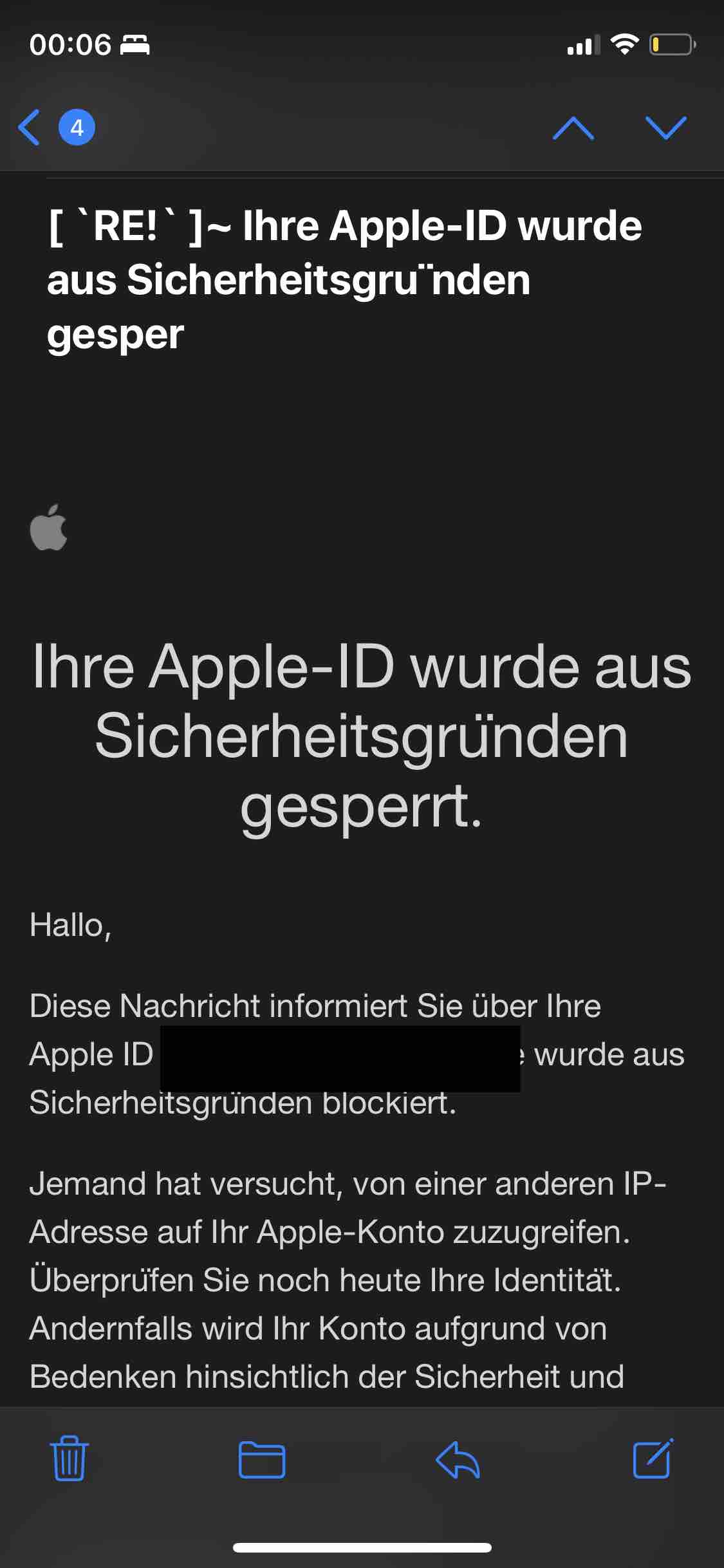 Email, dass Apple-ID gehackt wurde