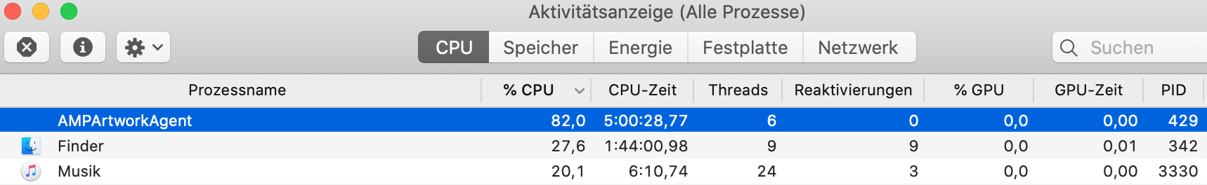 AMPArtworkagent macht Probleme mit Apple Music und bringt meine CPU zum Kochen