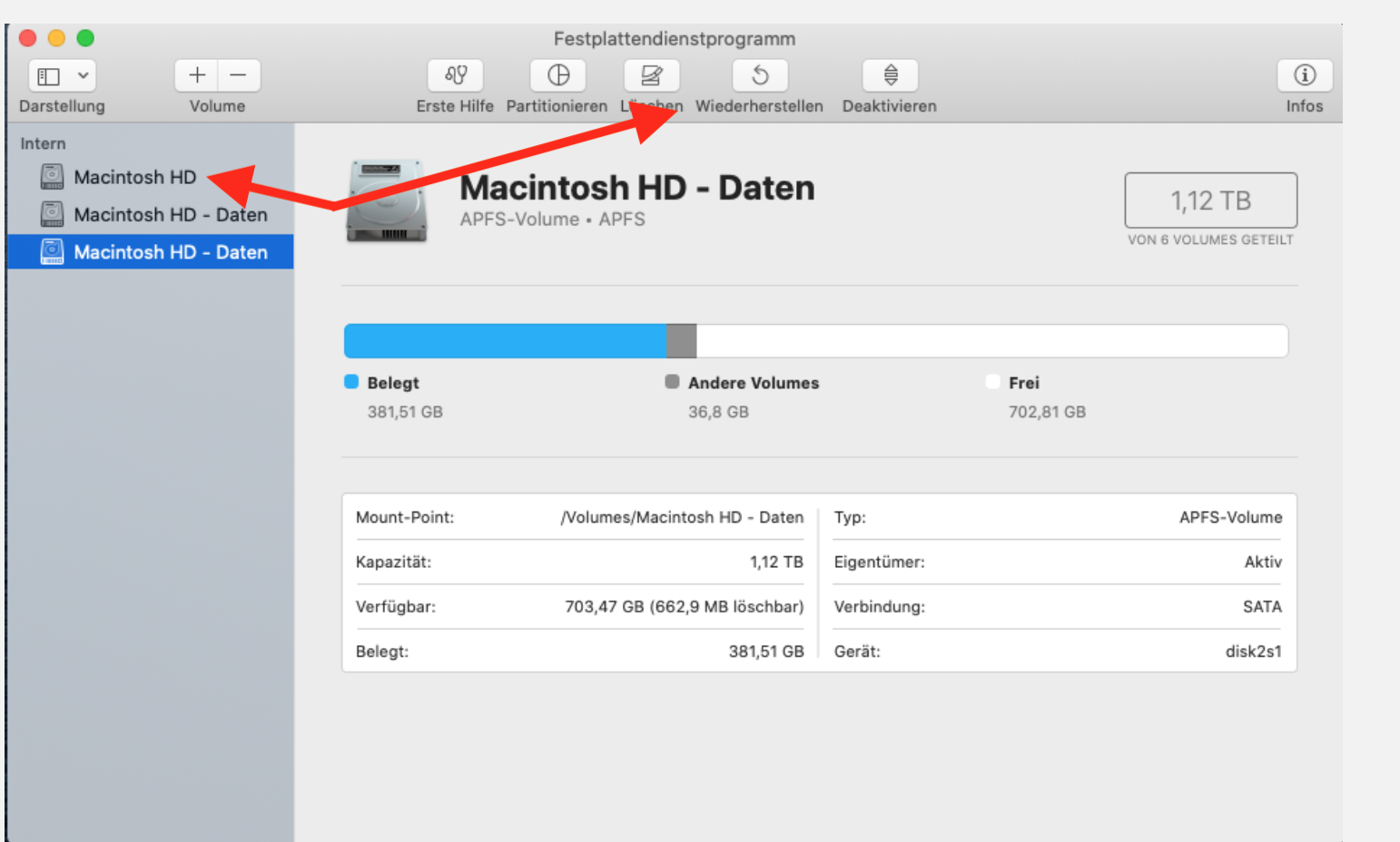 HDD/SSD komplett löschen (Extended journaled/APFS, GUID), wenn erledigt, FPDP beenden und nachfolgend