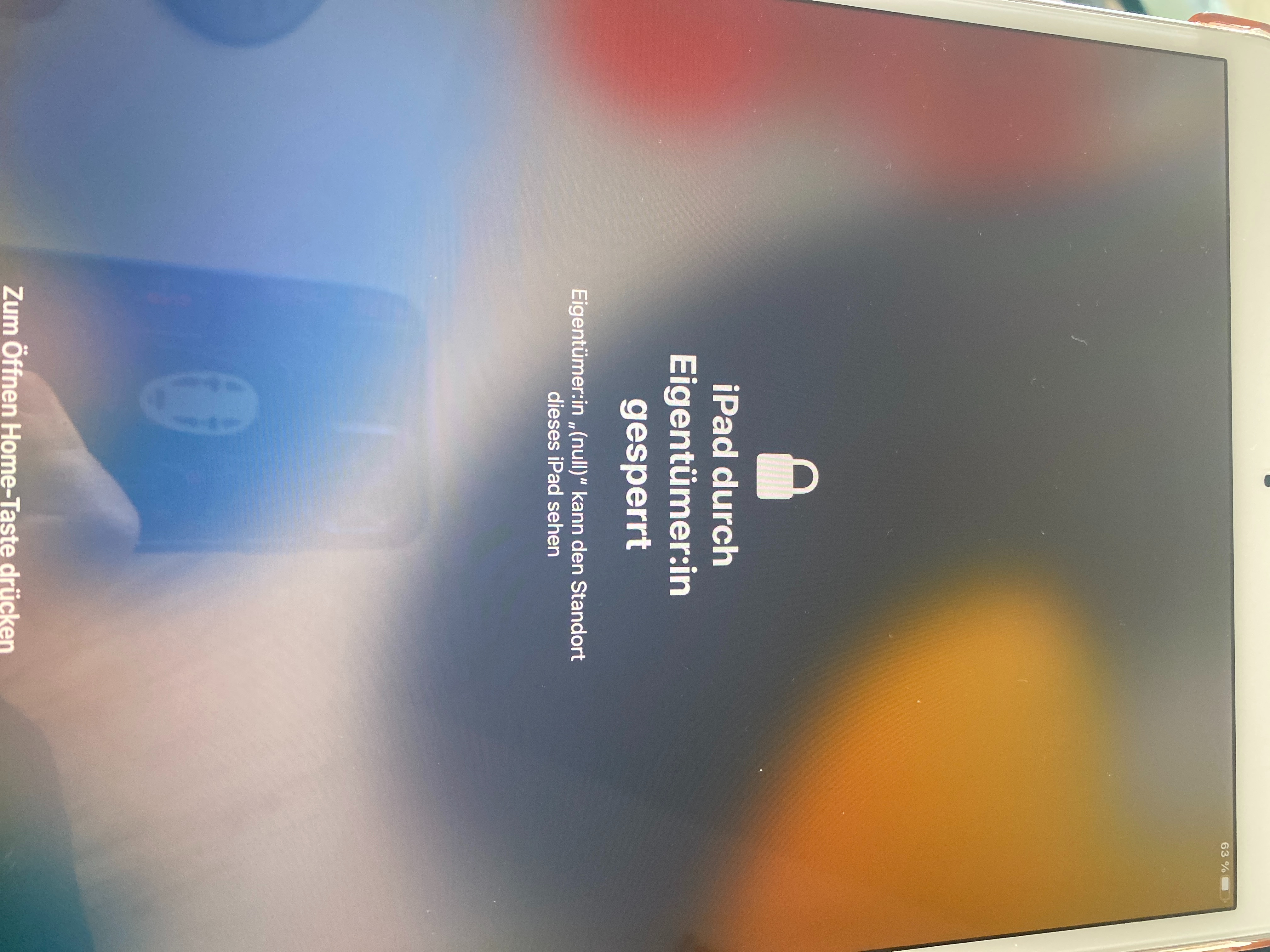 Hallo, ich habe dieses iPad schon seit letztem Jahr im Juni. Damals habe ich es auf einer Seite für refurbishede Geräte gekauft (backmarket). Gestern Abend habe ich es dann zum aufladen an die Steckdose gesteckt und heute früh stand dann auf einmal die Meldung „iPad wurde durch den Eigentümer gesperrt, Eigentümer:in „(null)“ kann den Standort dieses iPad sehen“. Leider habe ich Seite letztem Jahr im November kein iCloud Backup mehr erstellt, da ich keinen Speicherplatz mehr frei hatte. Was soll ich jetzt tuen? Auf meinem iPhone wird mir angezeigt dass ich mein „neues“ iPad mithilfe des iPhones konfigurieren kann. Ich habe aber Angst dass dann alle meine alten Daren gelöscht werden. Ich habe viele wichtige Daten auf meinem iPad für mein Studium. Wie kann ich es wieder entsperren ohne dass meine Daten verloren gehen?