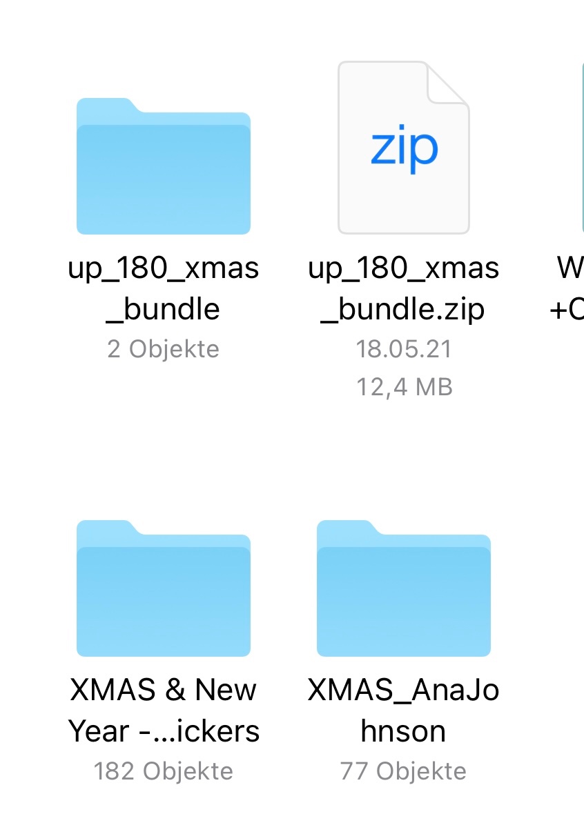 Wenn du noch alle originalen ZIP Dateien noch hast, speicherst du diese bitte unter Dateien / Downloads (falls diese nicht schon dort drin sind bei dir). Von dort entpackst du sie (wenn du im Dateien Ordner auf das ZIP Dokument klickst). Im gewünschten Sticker Ordner öffnest du den entsprechenden, suchst den Sticker aus, klickst auf „kopieren“, öffnest Instagram und fügst das kopierte Element in die Story ein. Dann sehen die Sticker aus, wie man es vorher gewohnt war.