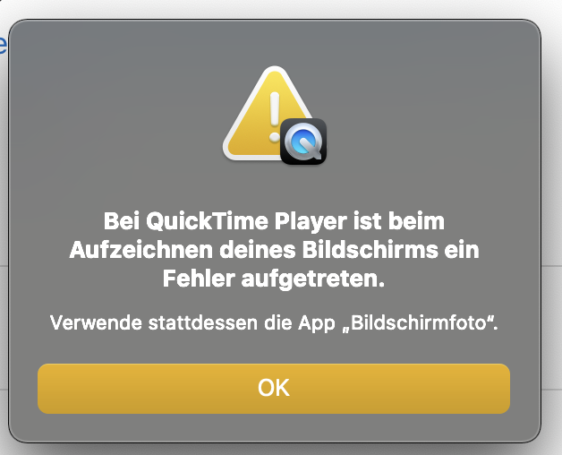 Ständige Errormeldung mit MacBook Air 2020 bei Bildschirmaufnahme mit Quicktime