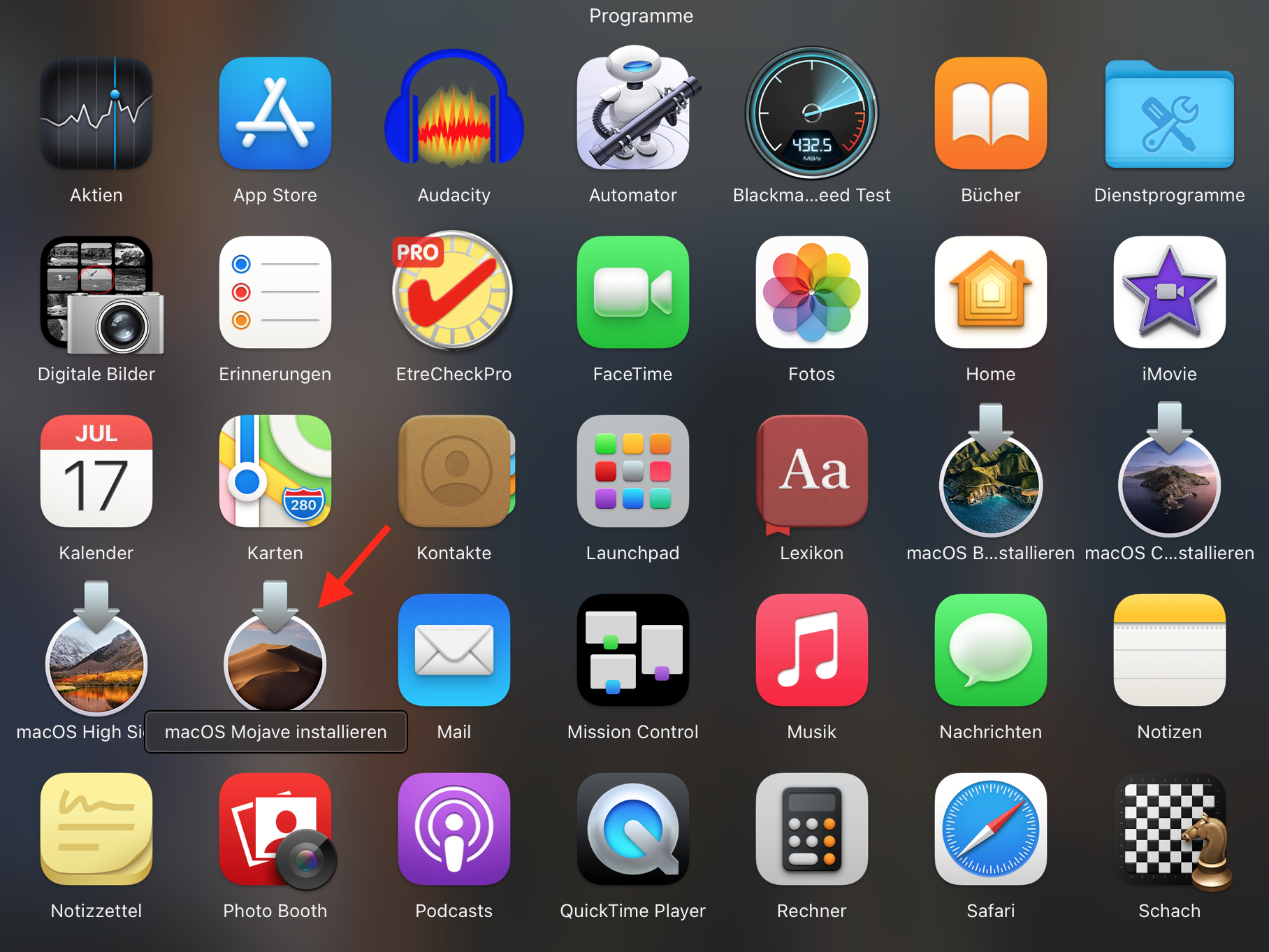 Wenn dann der Mojave/Catalina-Installer im Programmordner liegt