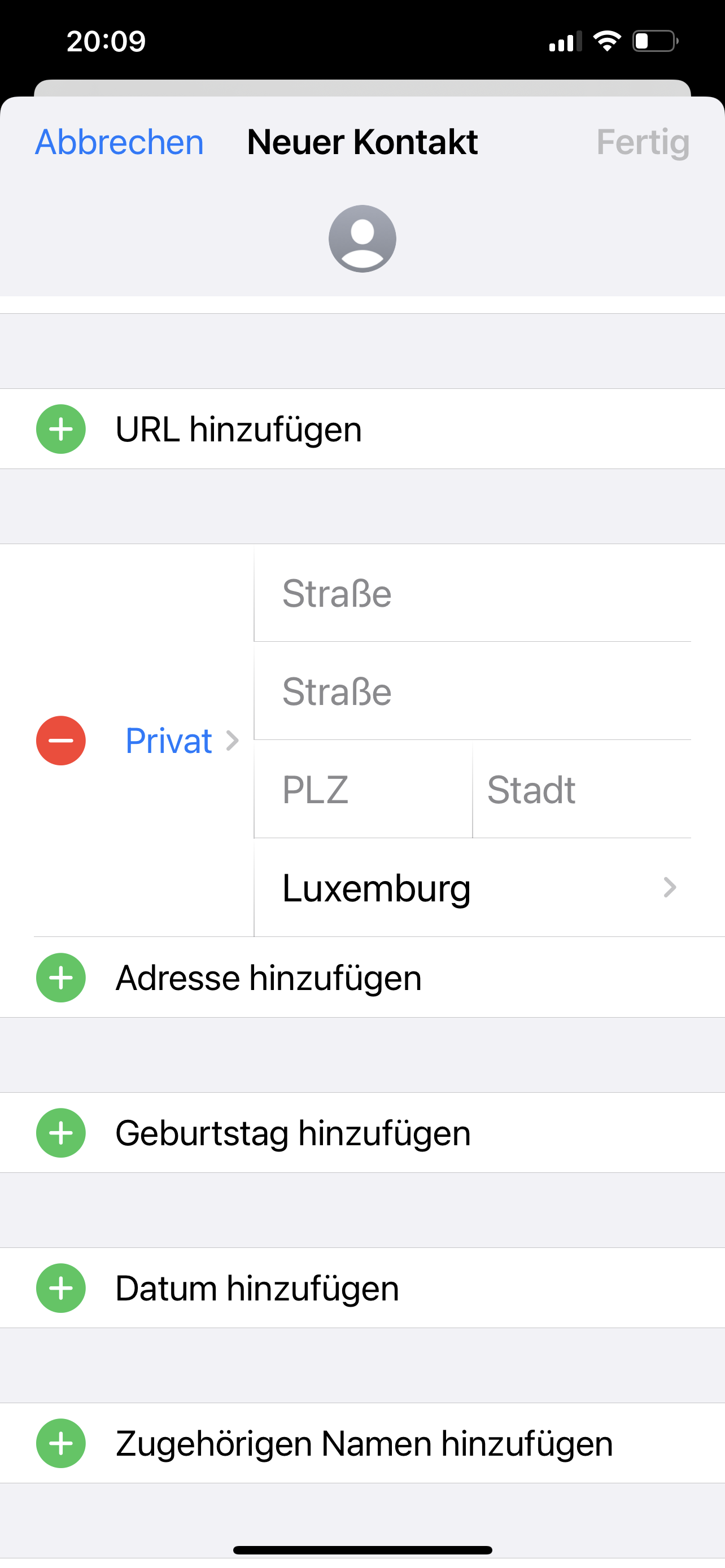 Beim erstellen neuer Kontakte erscheint im Adressfeld sofort der Ländervorschlag „Luxemburg“