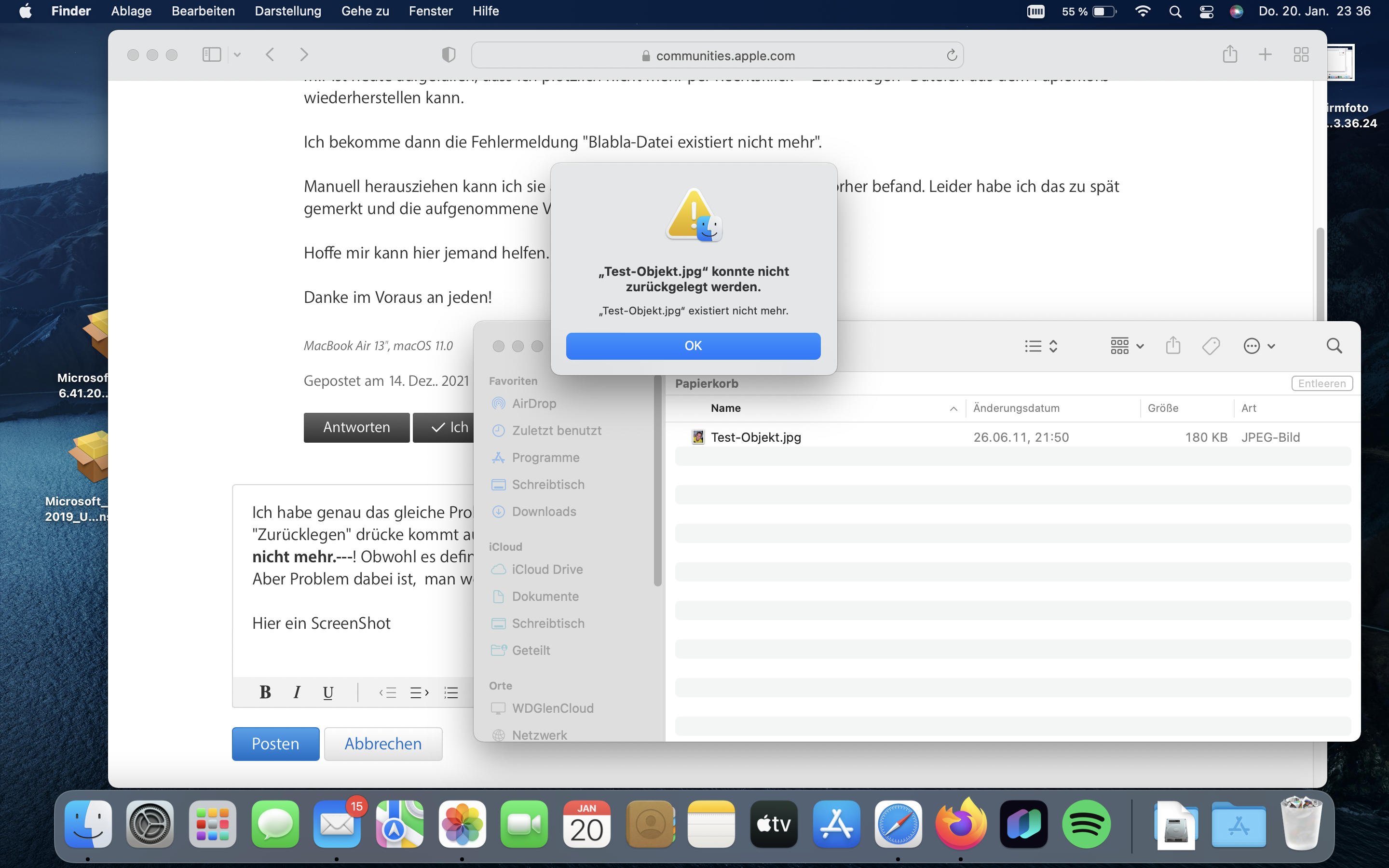 macOS Monterey Papierkorb-Funktion "Zurücklegen" funktioniert nicht mehr.