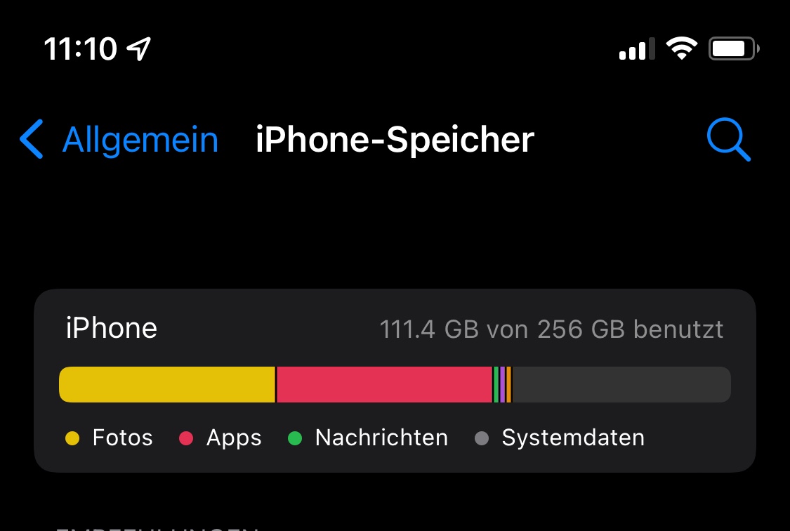 Jetzt is folgendes. Das MacAir wird immer bis zum Rand mit den Daten vollgeladen, d.h. ich habe nicht mal 500 MB freien Speicher (bei den 120 GB). Beim iPhone XS funktioniert die Speicherplatzverwaltung excellent, da habe ich mehr als 150 GB frei.