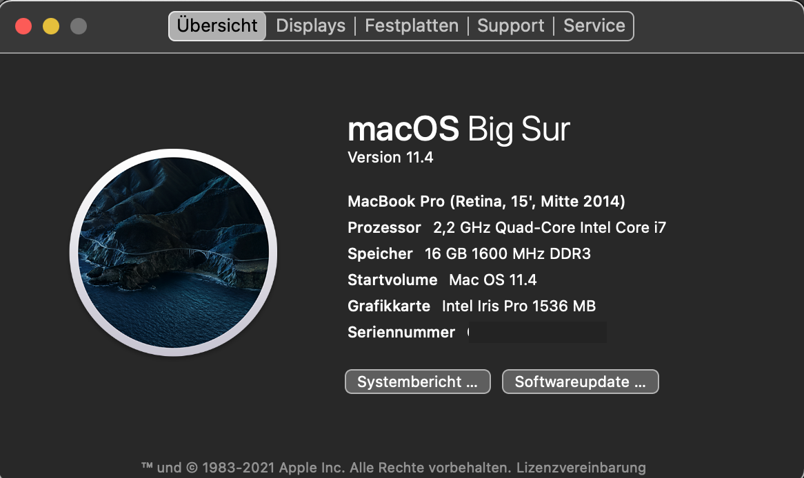 Seriennummer des MacBook wird als unbekannt angezeigt