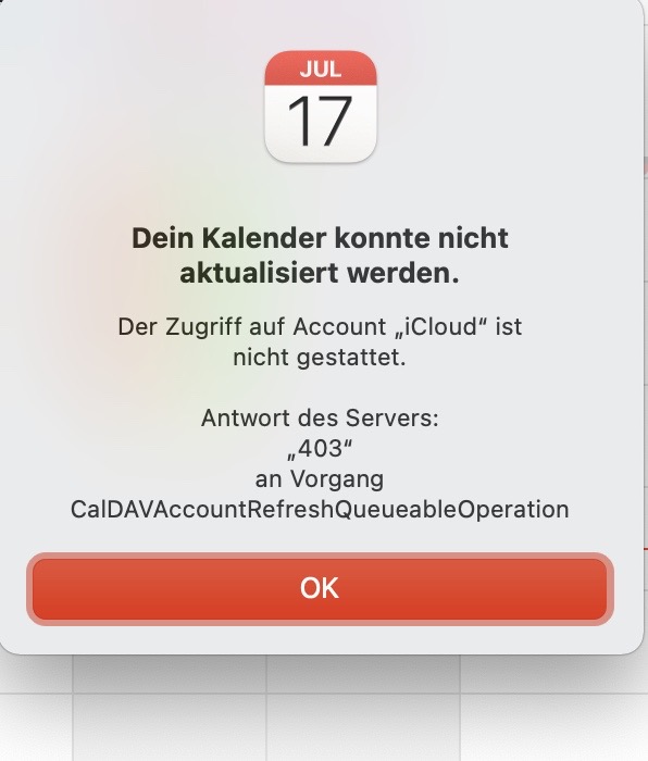 [macOS Monterey] Kalender synchronisiert nicht: Der Server meldet einen Fehler