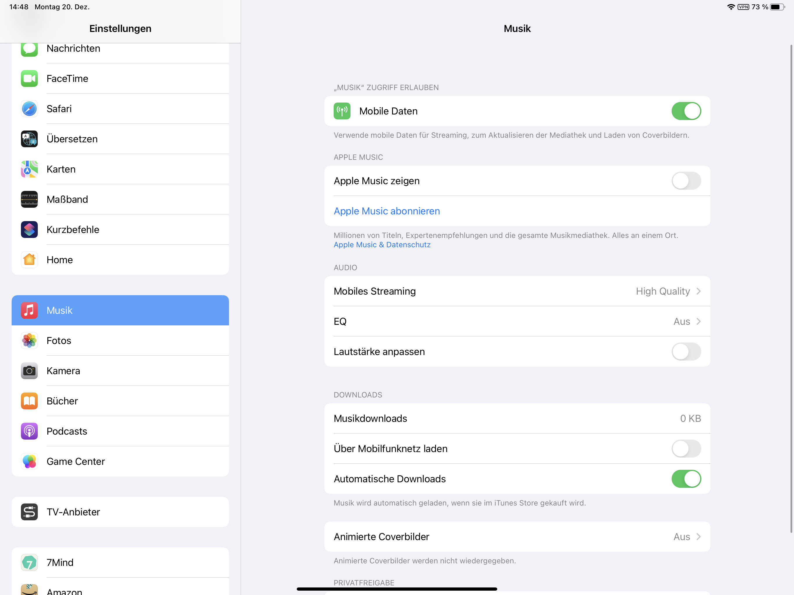 Keine Möglichkeit die Audioqualität in den Einstellungen/Musik einzustellen obwohl iPadOS 15.2 installiert ist