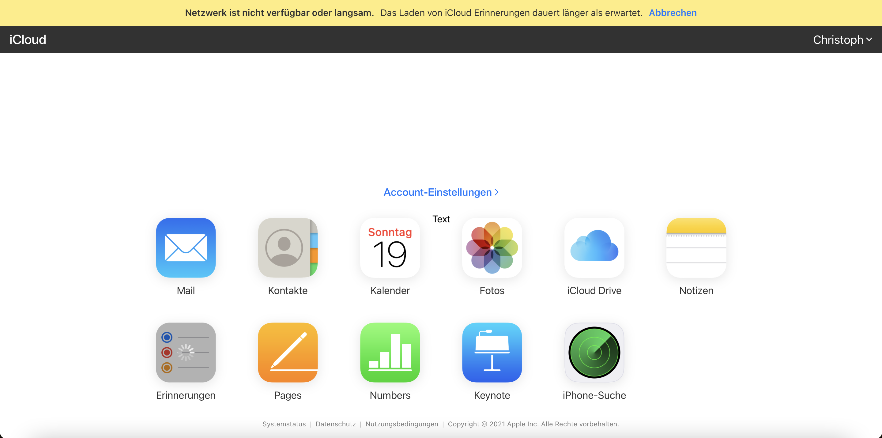 seit ein paar Tagen werden meine iCloud Erinnerungen nicht mehr synchronisiert. Die Einstellung wurden nicht verändert. Der Fehler ist unabhängig vom Gerät, ich kann auch nicht über iCloud.com auf die Erinnerungen zugreifen, s. Foto. Auch ein Neustart der Geräte und ein Aus- und wieder einschalten der Synchronisation haben nicht weiter geholfen.
