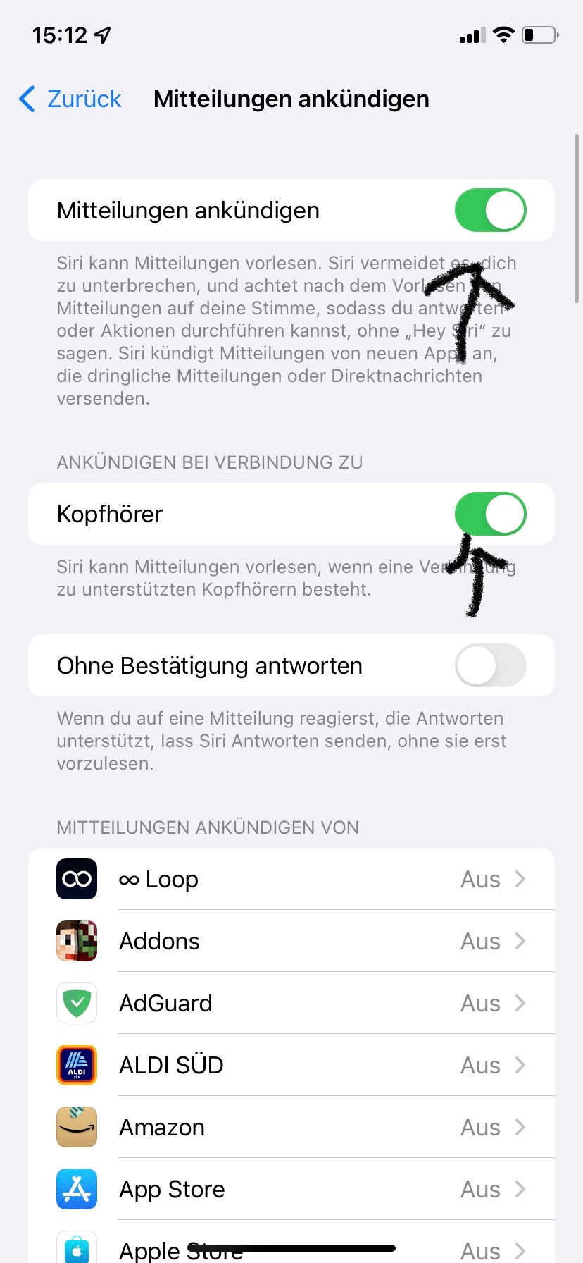 Ich habe keine Option zum Ein- bzw. Ausschalten der Kopfhörermitteilungen.