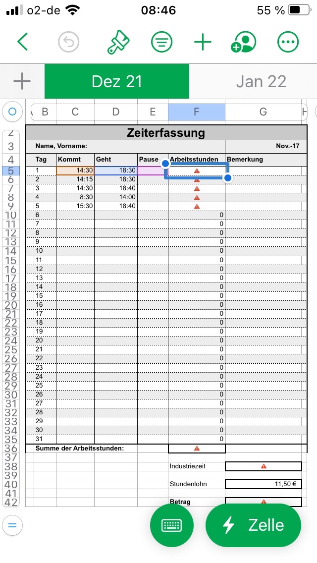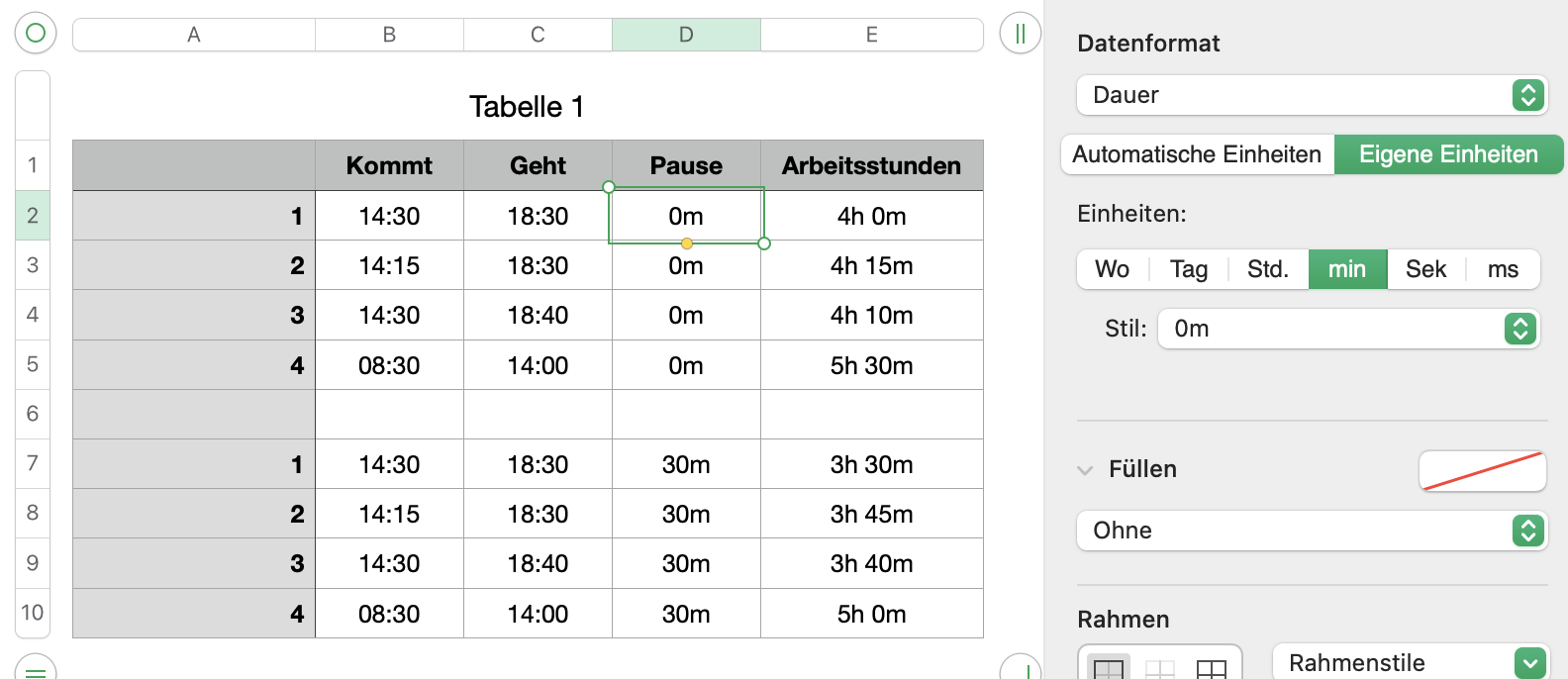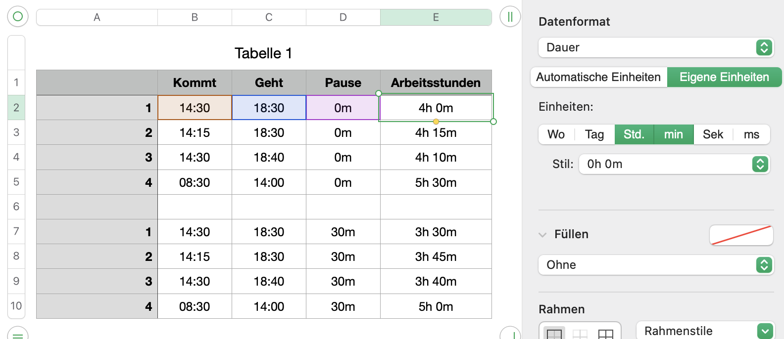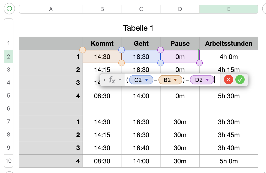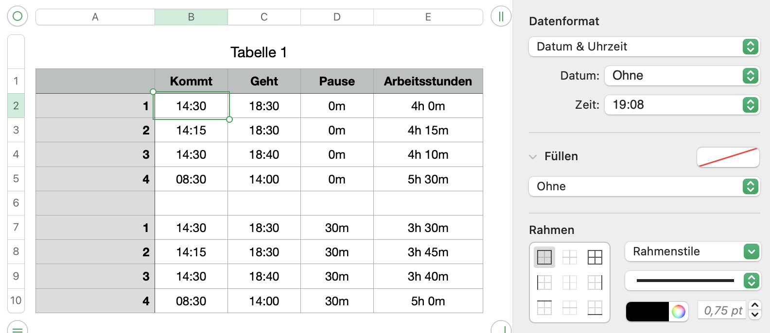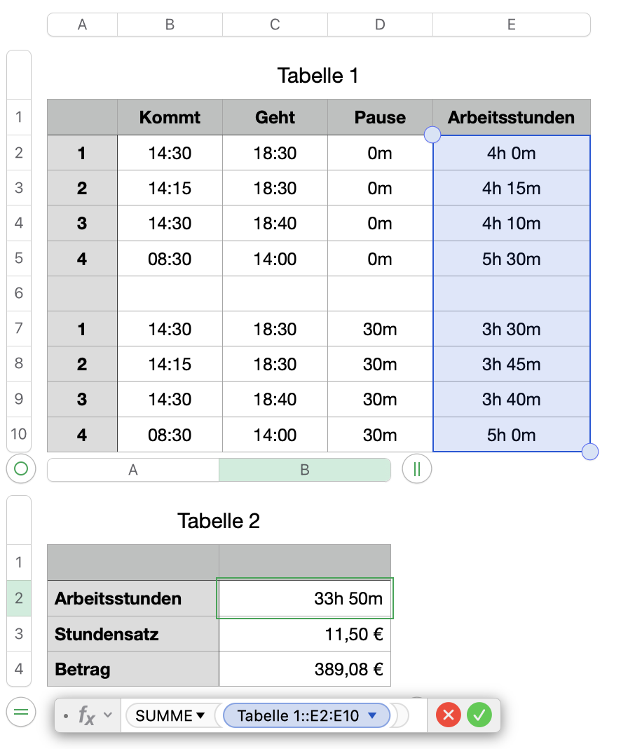 ich habe eine Exel Tabelle , in der ich meine Arbeitszeiten aufliste und in Industriestunden umbrechne. Diese Tabelle funktioniert in Numbers nicht.