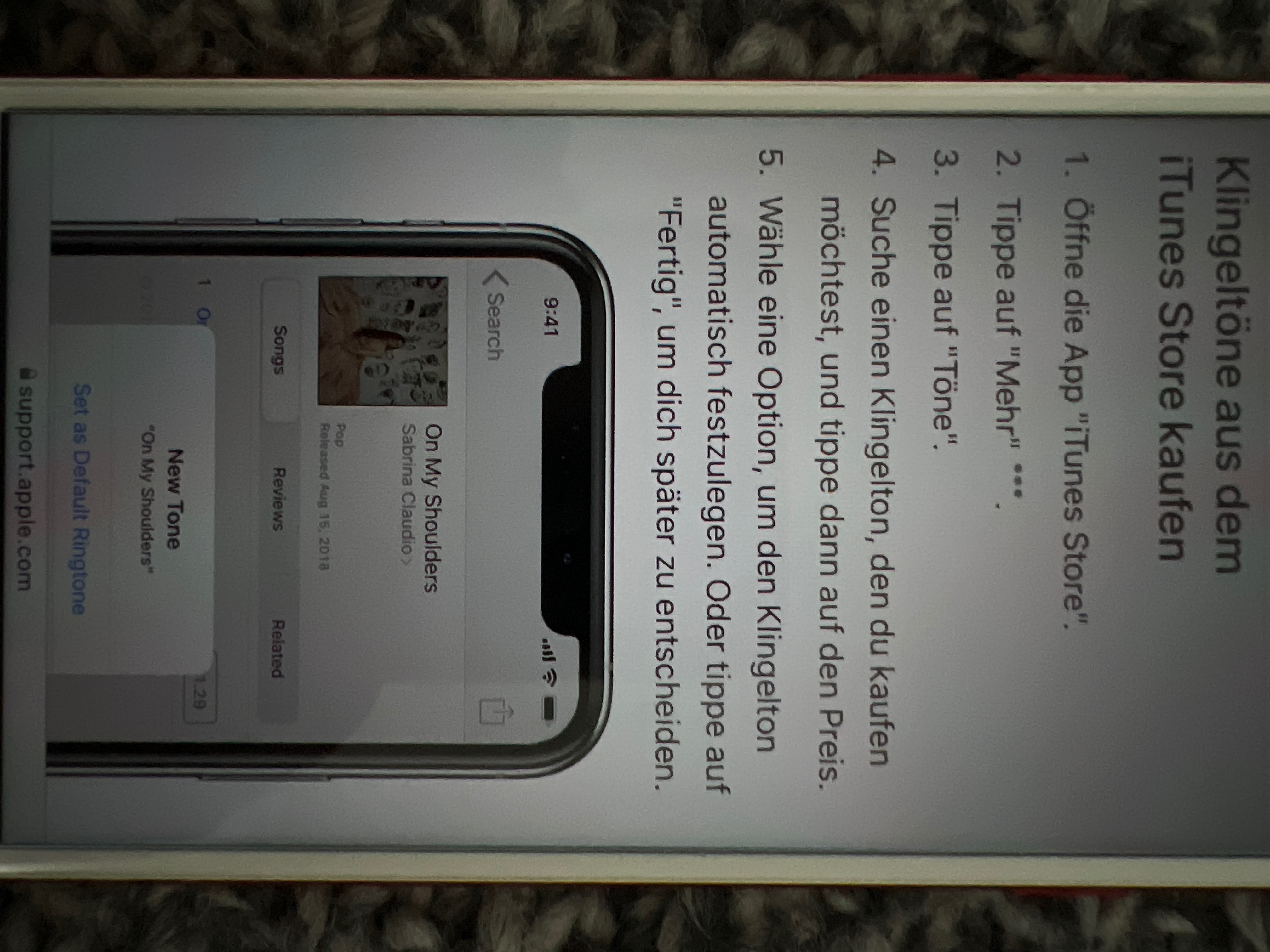 Ich habe, wie in der Beschreibung “Klingeltöne aus iTunes Store kaufen” - auf der Apple Homepage einen Song über iTunes gekauft, kann diesen aber nicht als Klingelton einstellen :-( ich kann den Song nur über iTunes abspielen.