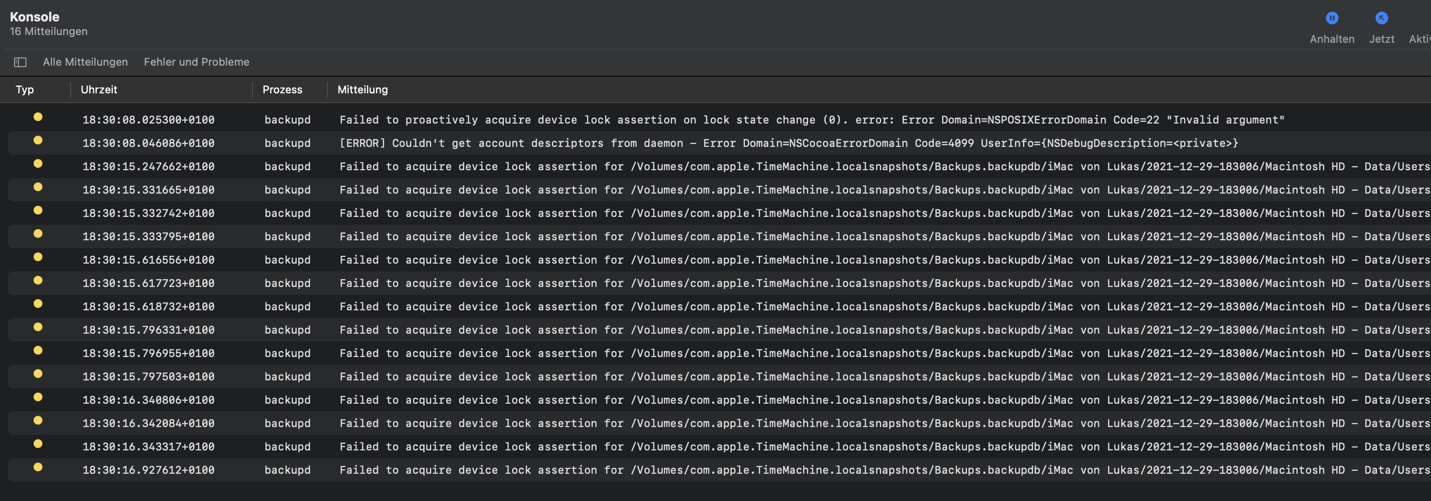 Das Backup bricht ungefähr bei 70% ab und in der Menüleiste oben steht dann "Auf Fertigstellung des ersten Backup warten"